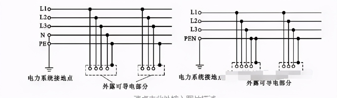建筑接地系统 建筑低压配电系统的接地形式有: TN、TT、IT三种接地形式。 民用建筑常用的接地系统为TN系统,分为TN-S 、TN-C、TN-C-S三种形式。 TN-S系统:是指在整个系统中,中性线(N线)和保护线(PE线)是分开的,只是在变压器处汇合,俗称三相五线制。 TN-C系统:是指在整个系统中,中性线与保护线是合一的,称为PEN线,即保护接零系统,俗称三相四线制。