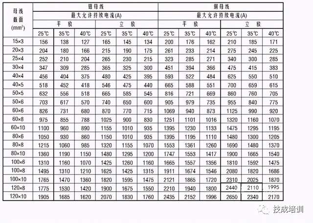 40℃时铜排载流量=排宽*厚度系数 排宽(mm);厚度系数为: 母排12厚时为20;10厚时为18; 依次为:[12-20,10-18,8-16,6-14,5-13,4-12]. 双层铜排[40℃]=1.56-1.58单层铜排[40℃](根据截面大小定) 3层铜排[40℃]=2单层铜排[40℃] 4层铜排[40℃]=单层铜排[40℃]*2.45(不推荐此类选择,最好用异形母排替代) 铜排[40℃]= 铜排[25℃]*0.85 铝排[40℃]= 铜排[40℃]/1.3