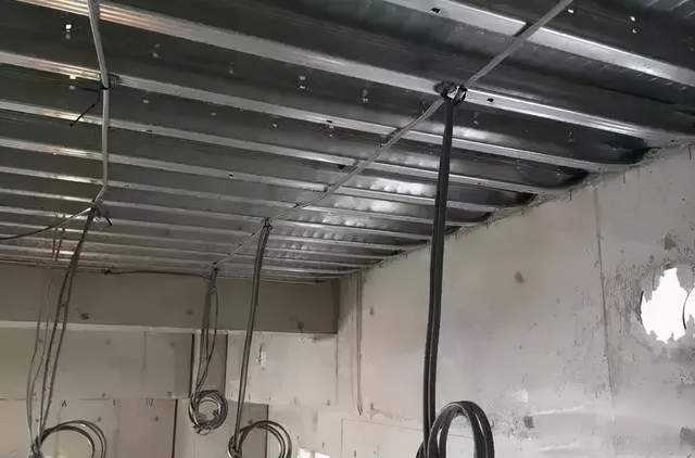 电工先布线的好处就是没有任何障碍,可快速完成工作。但是,像上图的场景,轻钢龙骨是要贴石膏板到最上方并且要进行隔音处理的。贴石膏板之前,电工不可能将电线拉过去,那样会因碍事而被剪断。