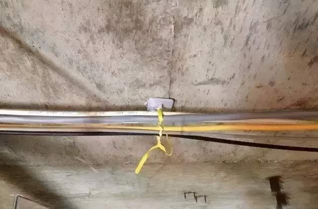 这张拍的角度不太好,小编本想给大家展示电线没有接触到混凝土拐角的情况。像这种情况,如果有可能接触到的话,一般会在拐角处贴一张黑色专用胶布,厚实且光滑可减少摩擦,保护电线。验收时这也是检查项目之一。