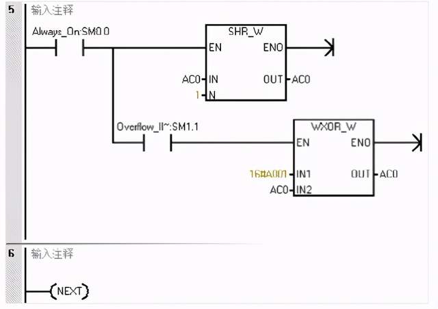 (3)执行移位操作,并判断移出为的状态,若移出位为1,则在与16#A001做异或运算。程序如图1-3所示
