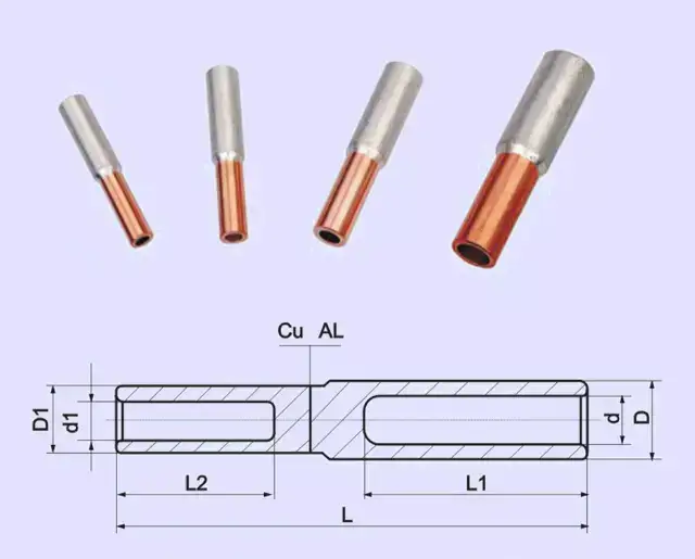 铜铝过渡线夹 2. 这是一个化学问题,金属的化学特性有相对活泼和不活泼,比如黄金,从来都不生锈,这就说明黄金化学不活泼,铁容易生锈,铁就比黄金活泼,如果两种金属放在一起就会加速活泼金属的氧化,铝和铜相比,铝比较活泼,两种电缆连接,会加速铝氧化(也就是生锈),影响使用。 3. 当铜、铝导体直接连接时,这两种金属的接触面在空气中水分、二氧化碳和其他杂质的作用下极易形成电解液,从而形成的以铝为负极、铜为正极的原电池,使铝产生电化腐蚀,造成铜、铝连接处的接触电阻增大。