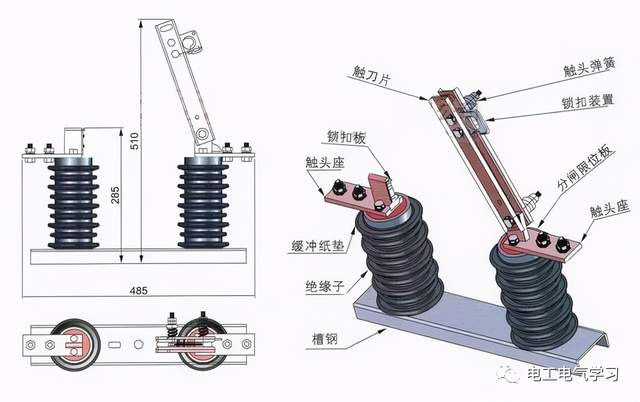 一种没灭弧装置的控制电器,其主要功能是隔离电源,以保证其它电气设备的安全检修,因此不允许带负荷操作。但在一定条件下,允许接通或断开小功率电路。是高压开关当中使用的最多也是最频繁的一个电器装置