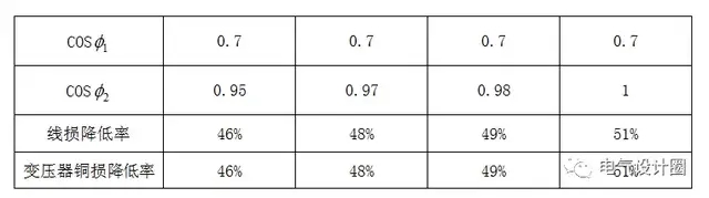 2) 降低输电线路及变压器的损耗 合理的补偿可以有效的降低系统电流,以系统自然功率0.7为例,如通过补偿装置将系统功率因数提高到接近1的水平,系统电流将下降30%左右,即线路和变压器的损耗可降为P=I2R=(1-30%)2R=0.49R,即线路和变压器损耗可降低51%。 用电企业的自然功率因数一般在0.7左右,功率因数从0.7提高到0.95以上线损降低率和变压器的铜损降低率如下表: