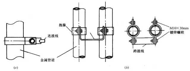 金属管道的等电位连接 (a)单根钢管;(b)多根并列钢管