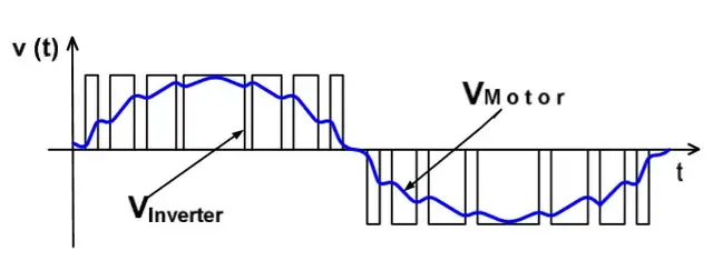 带正弦波滤波器的逆变器输出端和电机端子电压v(t)示意图