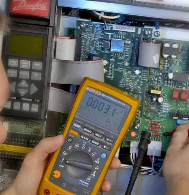 一台CT 18.5kW变频器上电跳“Uu 经检查这台变频器的整流桥充电电阻都是好的,但是上电后没有听到接触器动作,因为这台变频器的充电回路不是利用可控硅而是靠接触器的吸合来完成充电过程的,因此认为故障可能出在接触器或控制回路以及电源部分,拆掉接触器单独加24V直流电接触器工作正常。继而检查24V直流电源,经仔细检查该电压是经过LM7824稳压管稳压后输出的,测量该稳压管已损坏,找一新品更换后上电工作正常 一台DANFOSS VLT5004变频器 上电显示正常,但是加负载后跳“ DC LINK UNDERVOLT”(直流回路电压低)。这台变频器从现象上看比较特别,但是你如果仔细分析一下问题也就不是那么复杂,该变频器同样也是通过充电回路,接触器来完成充电过程的,上电时没有发现任何异常现象,估计是加负载时直流回路的电压下降所引起,而直流回路的电压又是通过整流桥全波整流,然后由电容平波后提供的,所以应着重检查整流桥,经测量发现该整流桥有一路桥臂开路,更换新品后问题解决