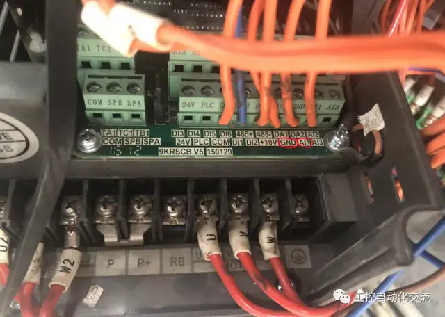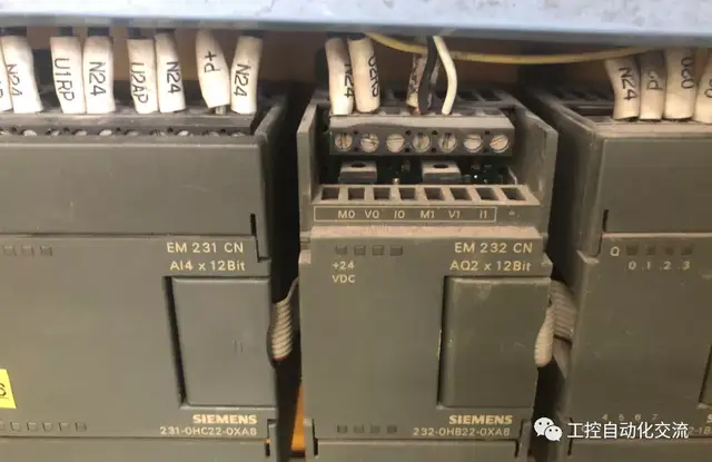 既然线路没有问题,那我就怀疑是这个EM232模拟量输出模块坏了,我就把这个模块拆下来。然后从别的机台拆了一个完好的EM232模块,给它装上去!装上去后试机,测得变频器端子GND,AI1,有电压!证明EM232模块有电压输出!此时变频器上有频率且牵引电机已经转起来了!