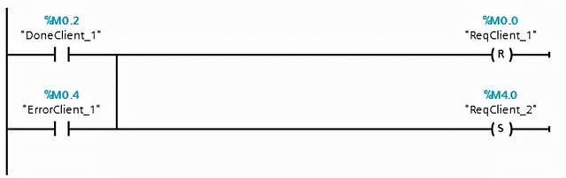 (5)第二个 MB_CLIENT 指令完成位或错误位复位本指令的 REQ 触发位: - 第二个 MB_CLIENT 指令的 DONE 或 ERROR 复位本指令的 REQ