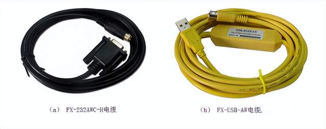 PLC与计算机连接需要用到通信电缆,常用电缆有两种:一种是FX-232AWC-H(简称SC09)电缆,如图所示,该电缆含有RS-232C/RS-422转换器;另一种是FX-USB-AW(又称USB-SC09-FX)电缆,如图所示,该电缆含有USB/RS-422转换器。