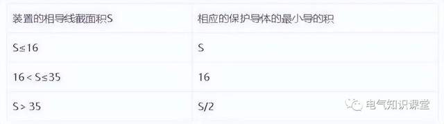 保护导体的截面按下表的规定选择。如果按表选择的导体不是标准尺寸时,应靠向标准导线值。当相导线与保护导体的材料不同时,应进行修正使之达到同一种材料的导电效果。