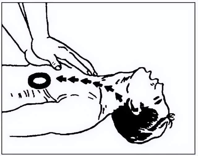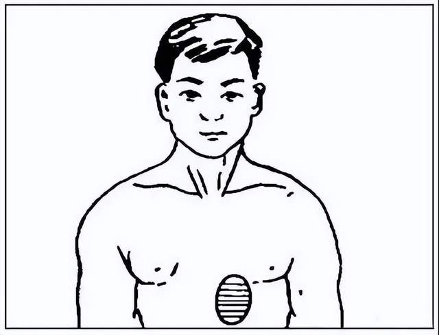 5.胸外心脏挤压法 ① 正确压点 硬将触电人衣服解开,仰卧在地上或硬板上,不可躺在软的地方,找到正确的挤压点,如图5所示。 ② 叠手姿势 救护人跨腰跪在触电人的腰部,如图 6所示 (儿童用一只手),手掌根部放在心口窝稍高一点的地方,掌根放在胸骨下 1/3的部位。 ③ 向下挤压 掌根用力向下面,即向脊背的方向挤压,压出心脏里面的血液,如图7所示。成人压陷到 3 ~ 5cm,每秒钟挤压一次,太快了效果不好;对儿童用力要轻一些,对成人太轻则不好。 ④ 迅速放松 挤压后掌根很快全部放松,如图8所示,让触电人胸廓自动复原,血又充满心脏,每次放松时掌根不必完全离开胸膛。
