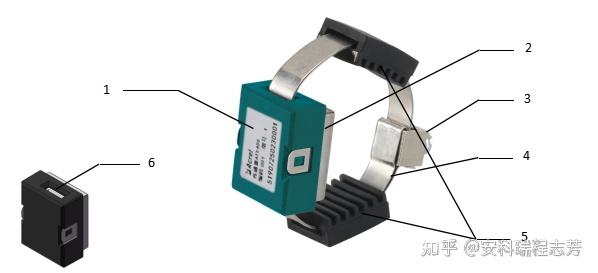 取2根合金片穿过锁紧件安装孔,将合金片居中对折后锁紧件固定在折弯处;将对折后的4层合金片分别穿过硅胶垫片-传感器主体-硅胶垫片;将整体传感器环绕安装部位一圈后拉紧合金片并旋紧螺丝;合金片多余部分留取适当长度并折叠压紧。合金片安装示意过程如下:
