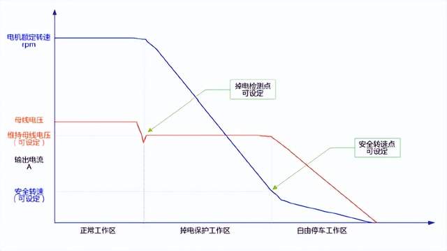 非正常断电保护逻辑 案例一:在高速电机中的应用 功率:110kW,10kHz载波频率 最高输出频率:500Hz 最高转速:30000rpm 设备类型:磁悬浮高速鼓风机