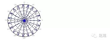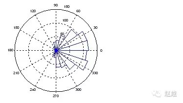 rose和hist很接近,只不过是将资料大小视为角度,资料个数视为距离,并用极座标绘制表示: