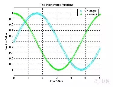 title('Two Trigonometric Functions'); % 图形标题