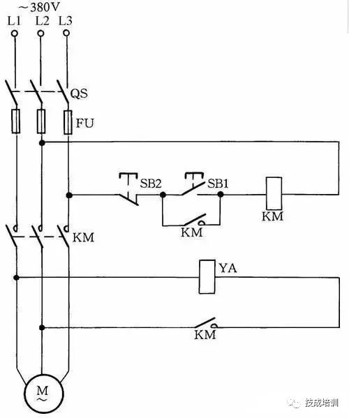 线路中YA为制动电磁铁,在通电后,制动解除;在断电后,YA立即制动。