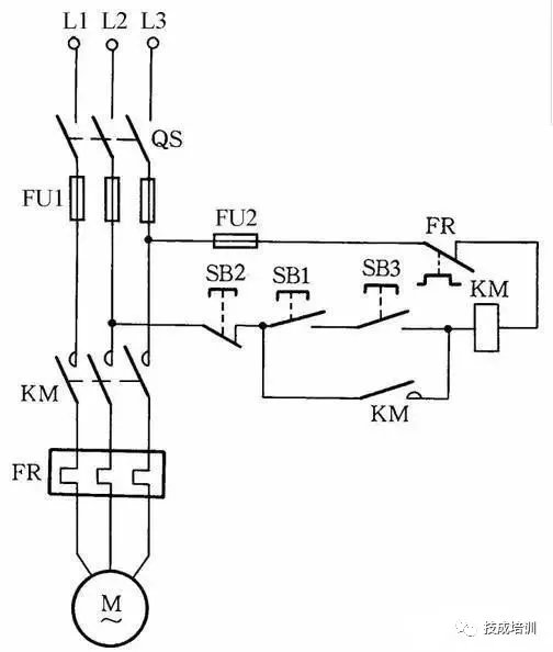 图中SB2为停止按钮,在停止时,按动SB2的时间要长一点。否则,手松开按钮后,接触器又吸合,使电动机继续运行。这是因为电源电压虽被切断,但由于惯性的作用,电动机转子仍然转动,其定子绕组会产生感应电动势,一旦停止按钮很快复位,感应电动势直接加在接触器线圈上,使其再次吸合,电动机继续运转。