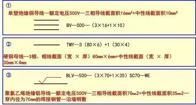 ②BLV,BV:塑料绝缘铝芯、铜芯电线。