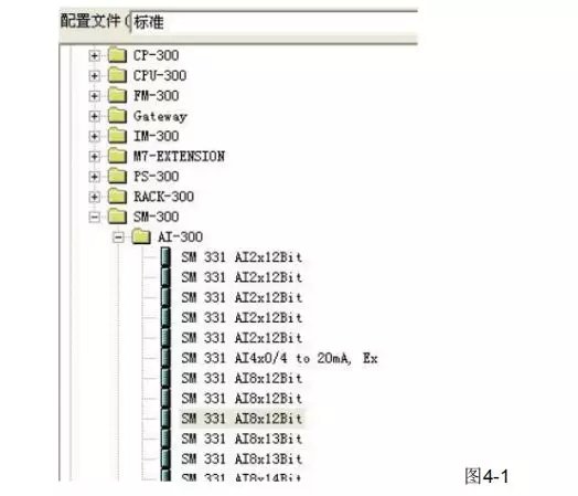 AI 系统 建立一个西门子硬件模块在添加好电源和 CPU 后,在配置文件中选择AI 模块如图 4-1 在添加完成时在硬件系统中会出现此模块如图 4-2 在此操作成功后双击进行选择,设置对话框点输入。如图 4-3 在选择完成后点确定,就可以了,然后就是程序编写。