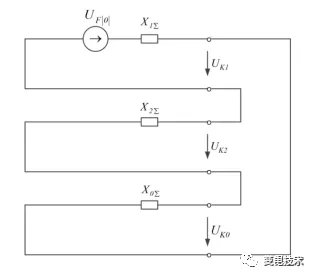 为确保系统接地中性点存在时,间隙保护不误动,其整定值应躲过系统单相接地时不平衡电压U0。由单相接地故障序网图可知当零序阻抗与正序阻抗比值最大时,故障点的零序电压最大。一般认为由于输电线路零序阻抗约等于正序阻抗的3倍,中性点接地主变压器的零序阻抗小于等于正序阻抗,因此中性点直接接地系统综合零序阻抗小于等于3倍正序阻抗,故取X0∑=3X1∑分析单相接地故障时可能出现的最大零序电压。 由于开口三角绕组位于母线电压互感器,因此在线路发生单相接地故障时,其感应电压中的零序分量必然要小于180V,可保证间隙保护不误动。 当接地变压器跳开后,系统接地中性点失去,此时系统变为不接地系统。故障相电压降为零,非故障相电压升高为原来的倍,两者夹角由120°缩小为60°。此时感应至母线压变开口三角绕组的相电压数值理论上应为173.2V。