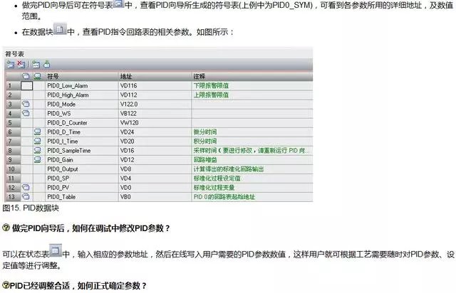 做完PID向导后,如何知道向导中设定值,过程值及PID等参数所用的地址?