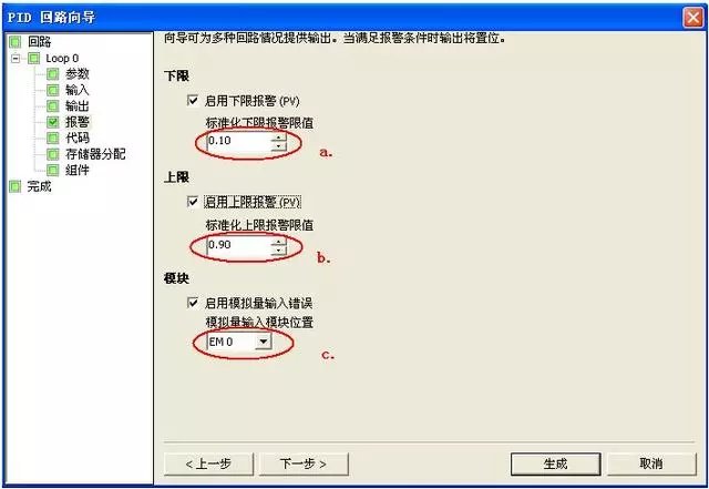第六步:设定回路报警选项