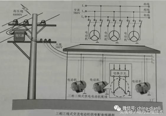 单相交流电和三相交流电的区别,应该简单的从交流发电机讲起,我们现在使用的50赫兹交流电,都是由发电厂通过变电站送来的,如果交流发电机里只有一个线圈儿,而且线圈只有两个电线头,人们把这种发电方法,叫做单相交流电,您也可以把它看成是一个电源,因为最简单的电源也要有两端头,现在如果我们把发电机里,顺着圆周方向,均匀分布放上3个线圈,每个线圈相隔120度, 这样当原动机带动发电机旋转时,这样我们就获得了3个电源,3个电源有6个端点,我们把其中的3个同名端点,连接接在一起,我们叫它中性点,还剩下3个端点,这三个端点,每两个端点之间的电压是380V叫做线电压,这剩下的三个端点,每个端点和中性点(就是三个同名端相连的那个点。) 的电压,是220V,叫做相电压,关于线电压跟相电压的关系,这里就不讨论了,实际上就是说,我们用户,供电部门给我们提供3个电源, 每个电源就叫做单相电源,我们小区居民是三相电源供电,每个家庭是单相电源供电。,因为所有的家庭电器,都是用单相电源的。 |