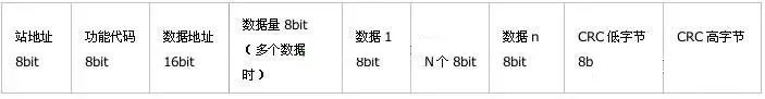 数据地址:MODBUS设备对应的寄存器地址,查设备手册可知道。 CRC校验码:CRC16校验码占用1个字节。