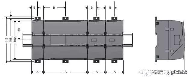 每个CPU、SM、CM和CP都支持安装在DIN导轨或面板上。使用模块上的DIN导轨卡夹将设备固定到导轨上。设备上DIN卡夹的孔内部尺寸是4.3mm。可将卡夹掰到一个伸出位置将设备直接安装到面板上的螺钉安装位置。要注意的是一定要将设备与热辐射、高压和电噪声隔离开。留出足够的空隙以便冷却和接线。必须在设备的上方和下方留出25 mm的发热区以便空气自由流通。