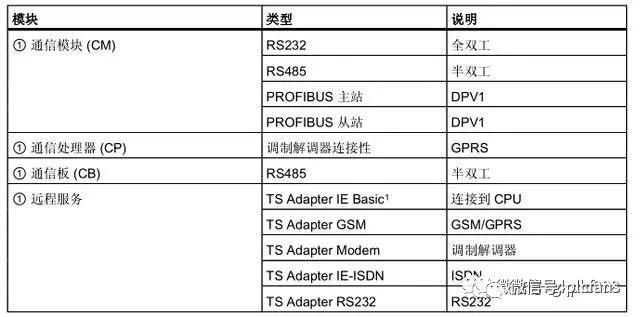 ① 通信模块 (CM)、通信处理器 (CP) 或 TS 适配器