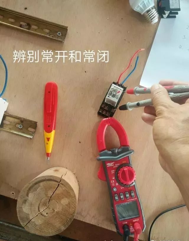 中间继电器的每一组控制触点分为公共端,常闭点和常开点。和线圈进线端一个方向的是触点公共端,出线端分常开和常闭。判断常开和常闭的方法是把继电器插上继电器座,用万用表的通断档分别测量公共端到两个出线端的通断,通的是常闭,不通的是常开。如果没有万用表,我这里有一个小经验告诉大家,一般中间继电器的触点都是上开下闭,就是上面一排是常开点,下面一排是常闭点。大家可以参考一下。后面有图。