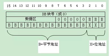 16 位地址指针用于定时器、计数器、程序块(DB、FC、FB)的寻址,16 位指针被看作 一个无符号整数(0-65535),它表示定时器(T)、计数器(C)、数据块(DB、DI)或程序块 (FB、FC)的号,16 位指针的格式如下: 图2 16位指针格式