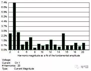 其中A1是幅频特性中基波的幅值,而A2 、A3、A4、A5、……分别是2、3、4、5、……次谐波的幅值。选取不同数量的谐波分量,可以计算出对应的THD值。 采用WAVESTAR软件进行分析可以得到完整谐波分析数据,下图为分析得出的柱型图,从图中可以针对各次谐波异常的状况采取相应的对策进行改善:
