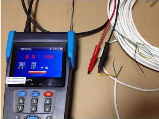 2、使用感应式电笔检测检测法: 以下方法只适用于没有屏蔽层的各种电缆:感应试电笔(就是带着一个电子表似的屏幕,可以检测电压和通断的那种)。首先排除断点电缆周围的电缆有电源,然后将有断点的电缆接在火线上,将电笔垂直于导线,按住“感应断点测试”按钮在导线上向前缓慢移动,等试电笔检测的交流信号出现突然消失时,即可判断断点在该检测点处,误差最多不超过10cm。