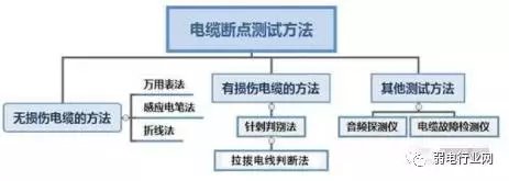 电线电缆的测试方法如上图所示分为三种:第一种是无损伤电线电缆的检测方法、第二种是有损伤电线电缆的检测方法、第三种是使用仪器检测方法。