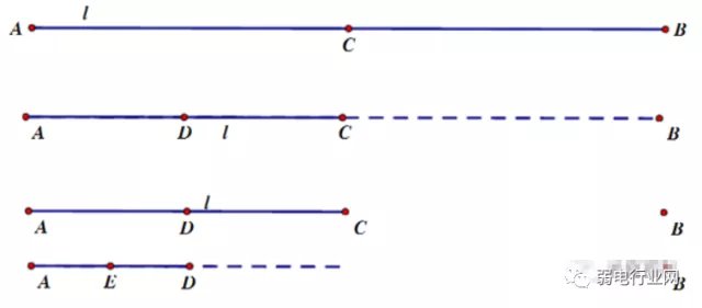 可以先找到AB的中点C,测量AC和BC是不是通,如果AC不通,说明断点在AC之间,然后再找到AC的中点D,分别测量AD和CD之间是否通电,如果AD不通,说明断点在AC之间,再找到AD的中点E,分别测量AE和DE之间是否通电……这样,经过n次的测量,就可以把断点确定在线长的n 21 范围之内。