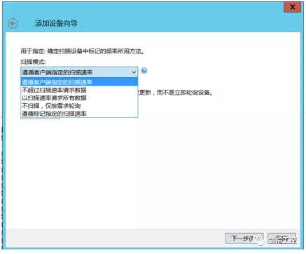 第六,设定扫描模式,一般选择“遵循客户端指定的扫描速率”,具体扫描模式的描述在此画面中有详细描述信息,按照需求配置。