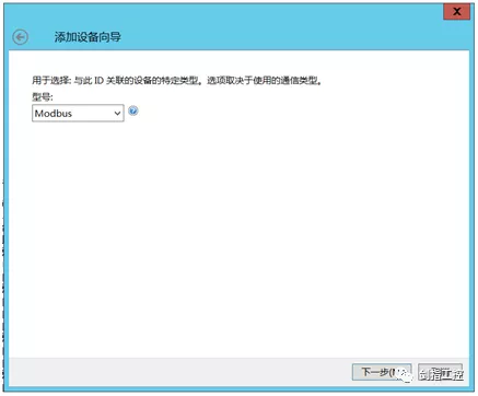 第四,在通道下新建设备,型号选择:Modbus