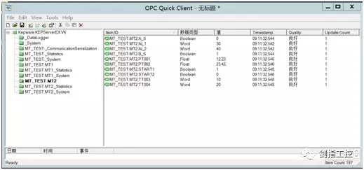 第十,使用ModSim进行测试,使用以上步骤中建立的两个设备的IP地址进行仿真测试,并打开Kepware的Quick Client 查看是否两台设备的数据都读取正常。如下图测试: