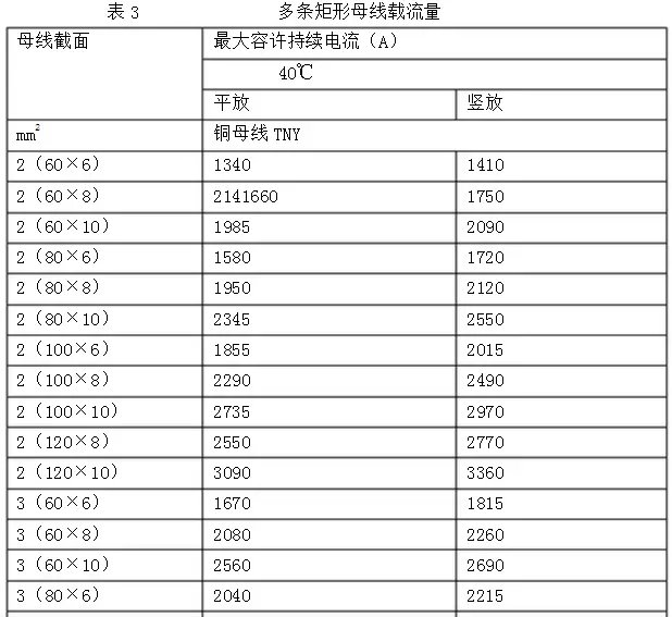 2、分支回路母线(导线)的选择,按图中标注线径选择,如未标注则按断路器脱扣器电流选择。 3、主回路或分支回路选用母线时,依据额定电流在表2、表3中选用不小于该载流量的截面规格。 4、低压配电装置的接地母线(PE)应符合表1的要求。