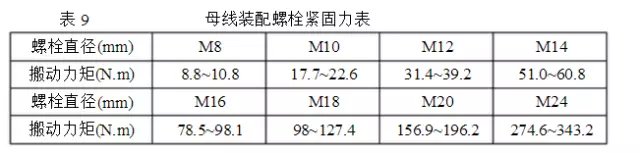 3、母线的接触应连接紧密,连接螺栓的紧固力应符合表9的规定