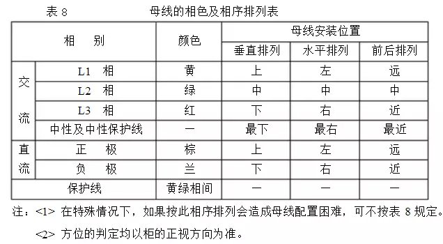 三、技术要求1、对于电器元件,带电零件部件及母线间的电气间隙,爬电距离不得小于表5、表6、表7所给定值。(为提高产品安全性能并便于施工,我厂低压开关柜要求电气间隙不小于15mm,爬电距离不小于20mm,如有特殊情况,也不得小于表6表7的值)。 2、母线的相色及相序排列应符合表8规定