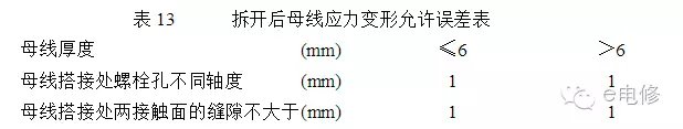 七、 一次母线配线检查母线安装完毕后不应有应力,拆开检查应符合表13的要求