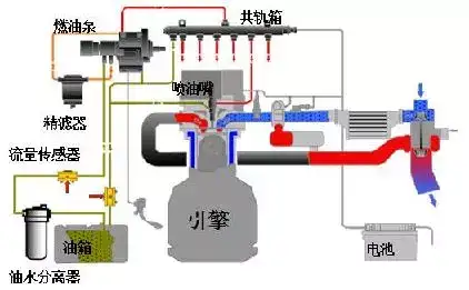 柴油发动机的燃油消耗量的计量采用差分测量法。由于柴油发动机有进油管和回油端,柴油发动机工作时,柴油从油箱被吸入进油管,经过油水分离器过滤后,进入供油泵然后从供油泵压出,经过精滤过滤后进入喷油嘴喷射,没有喷