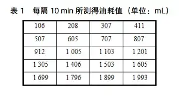 点燃发动机,待其稳定运行后每隔 10 min 读取并记录显示屏上的油耗数值 ( 见表 1 )。