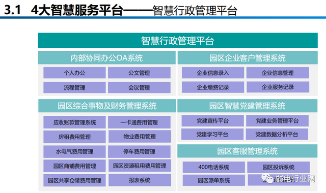 工业园区作为现代化办公、生产、研发,将主要用作业务,在信息智能化时代,工业园区建设成为具有智能型特征,产业园区规划以生产、仓储物流为主,围绕厂区数字化管理为中心智能化建设,有不项目经理也正在涉及这方面的项目,在我们弱电VIP技术群中也经常讨论到。 本期我们来通过这个工业园智慧园区建设方案,来详细了解关于园区建设。 |