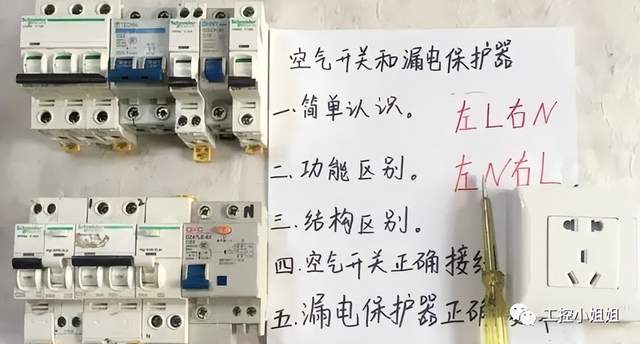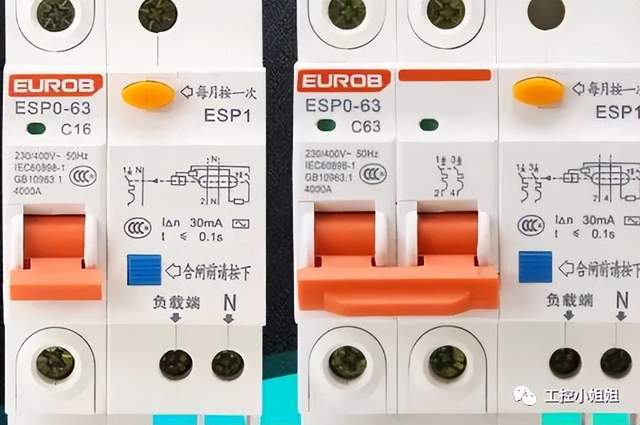 空气开关和漏电保护器是家庭电路中应用很广泛的电路保护性元器件,最近很多刚入门学习电工技术的师傅留言问:空气开关和漏电保护器到底什么区别?有什么联系?都有什么功能?具体应该怎么接线?等等诸如此类的问题都是电工入门者经常都会有疑问的地方,今天我们就重点从5个方面来详细,系统的看一下:空气开关和漏电保护器的联系和区别? 一,简单的认识空气开关和漏电保护器。 1,空气开关的简单认识。一般情况下我们家庭电路中常用的空气开关可以分为1P,2P,3P(农村大户型电路中用)。 2,漏电保护器的简单认识。漏电保护器在家庭电路中一般常用的有1P+N和2P的漏电保护器。 二,空气开关和漏电保护器功能上有什么区别? 1,空气开关主要对电路或者设备进行短路保护和过载保护的功能,空气开关主要用来保护线路或者设备的。 2,漏电保护器除了具备短路保护,过载保护的功能外,还多了一个漏电保护的功能,一般情况下,漏电保护器是用来保护人的,防止人身触电的! 三,空气开关和漏电保护器在结构上的区别。 漏电保护器可以分为可组装式漏电保护器和不可拆卸式漏电保护器。 不可拆卸式的1P+N漏电保护器,如图: 可拆卸式的1P+N和2P的漏电保护器,如图: 可以看到,漏电保护器主要由空气开关部分和漏电脱扣机构组成,因此漏电保护器不仅具备空气开关的短路保护和过载保护的功能,还多了一个漏电保护的功能。 四,空气开关的正确接线。 1P空气开关的接线:控制的是火线的回路,一般情况下,火线上进下出,接线非常简单: 2P空气开关的接线:首先看有没有标识,如果有明确的N线标识,需要按照标识来接线,如果没有标识,那么左边接火线右边接零线,或者左边接零线右边接火线都是可以的: 3P空气开关的接线:3P空气开关主要控制三相电源,一般情况下,从左到右:黄绿红三相电,注意上下相互对应就可以了。 五,漏电保护器的接线。 对于漏电保护器的接线,一般情况下都有很明确的零线标识,严格的按照标识来接线。 2P漏电保护器的接线: 可以看到零线标识在左侧,因此接线的时候需要左零右火。 1P+N的漏电保护器分为2种,第一种: 可以看到零线标识在左侧。因此接线的时候同样要左零右火。 第二种1P+N的漏电保护器: 可以看到有明确的零线标识在右侧,需要特别注意:接线的时候左火右零。 特别提醒一点:对于第二个1P+N的漏电保护器而言,控制的只是火线的回路,不控制零线的回路,即控火不控零,漏电保护器不管有没有跳闸,零线始终都是通的,只是断开了火线而已,这一点需要特别注意,因此接线一定不能出错,记住:看标识,左火右零! 这就是空气开关和漏电保护器的基础认识,也是电工入门的基础技能,如果你有更好的想法或者建议,可以在下方评论区留言,电气电工知识,一起交流,互相学习! |