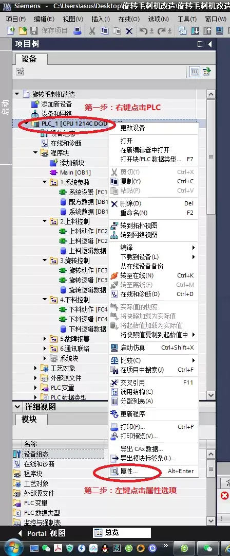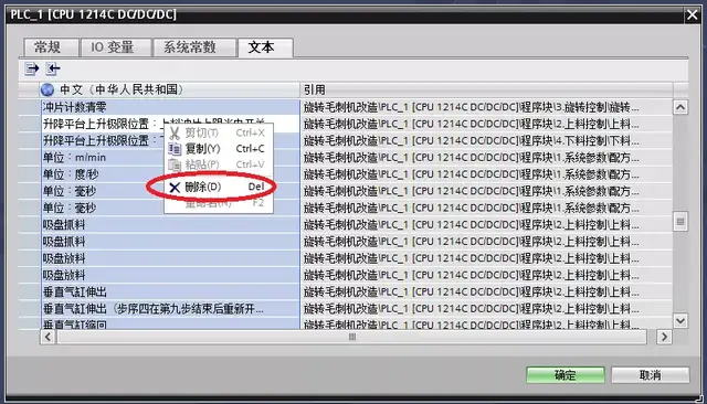 【一】/打开博途项目后,右键点击项目树PLC的属性选项,如下图所示: 【二】/点击属性选项卡的文本选项,如下图所示: 【三】/按住“SHIFT键”选中注释文本,如下图所示: 【四】/在选中的注释文本上右键选择删除,如下图所示: 【五】/删除选中的注释文本后点击确定,如下图所示: 【六】/编译保存后关闭项目,如下图所示: 【七】/重新打项目后,所有的程序注释都已经删除了 【八】/说几句题外话: 如果再把变量表删除了,把数据块的变量名也弄乱,这样的程序看起来是很吃力的,有时候比加密码还管用。为什么说看别人的程序还不如自己写,这也许就是原因之一。不过,我还是提倡把PLC程序写得结构简单明了、注释条例清晰和逻辑安全可靠。 |