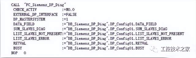 【注意:当CHECK_ACTIVE,m0.0=1时诊断功能使能】 六、如何读取诊断信息? 经过上面的程序处理,可以得到两个数据区 LIST_SLAVES_NOT_PRESENT 和LIST_SLAVES_ERROR。这两个参数,每个都具有16字节的数据。这16个字节的每个位,就代表一个DP从站设备。它可以表示16×8=128个站点。 某个位被置1,就表示该位代表的从站丢失或故障;但从站故障消失,该位会自动复位为0。对于DP网络1来说,它具有的4个从站,其诊断位